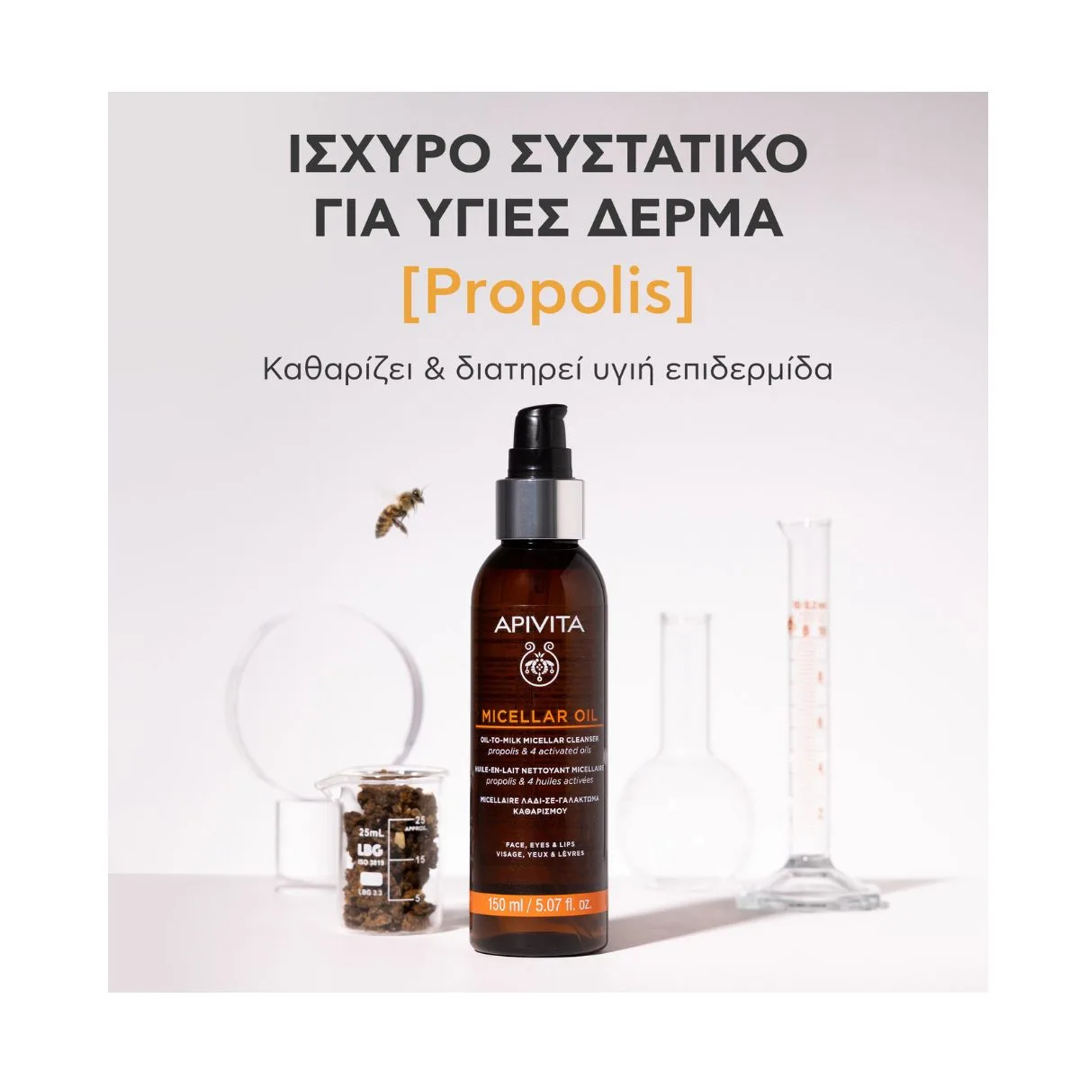 Απομακρύνει το μακιγιάζ και τους ρύπους με την προστασία της πρόπολης και τη φροντίδα ενός ελαίου.